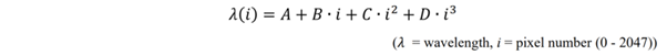 Equation (1). Pixel wavelength calibration equation